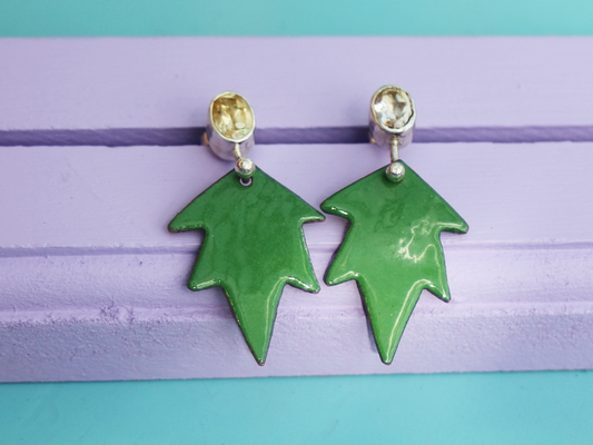 Dauntless Earrings with Reclaimed Citrine and Copper Enamel in Green
