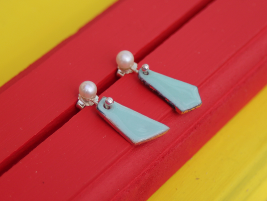 Tessera Pearl and Copper Enamel Earrings in Aquamarine